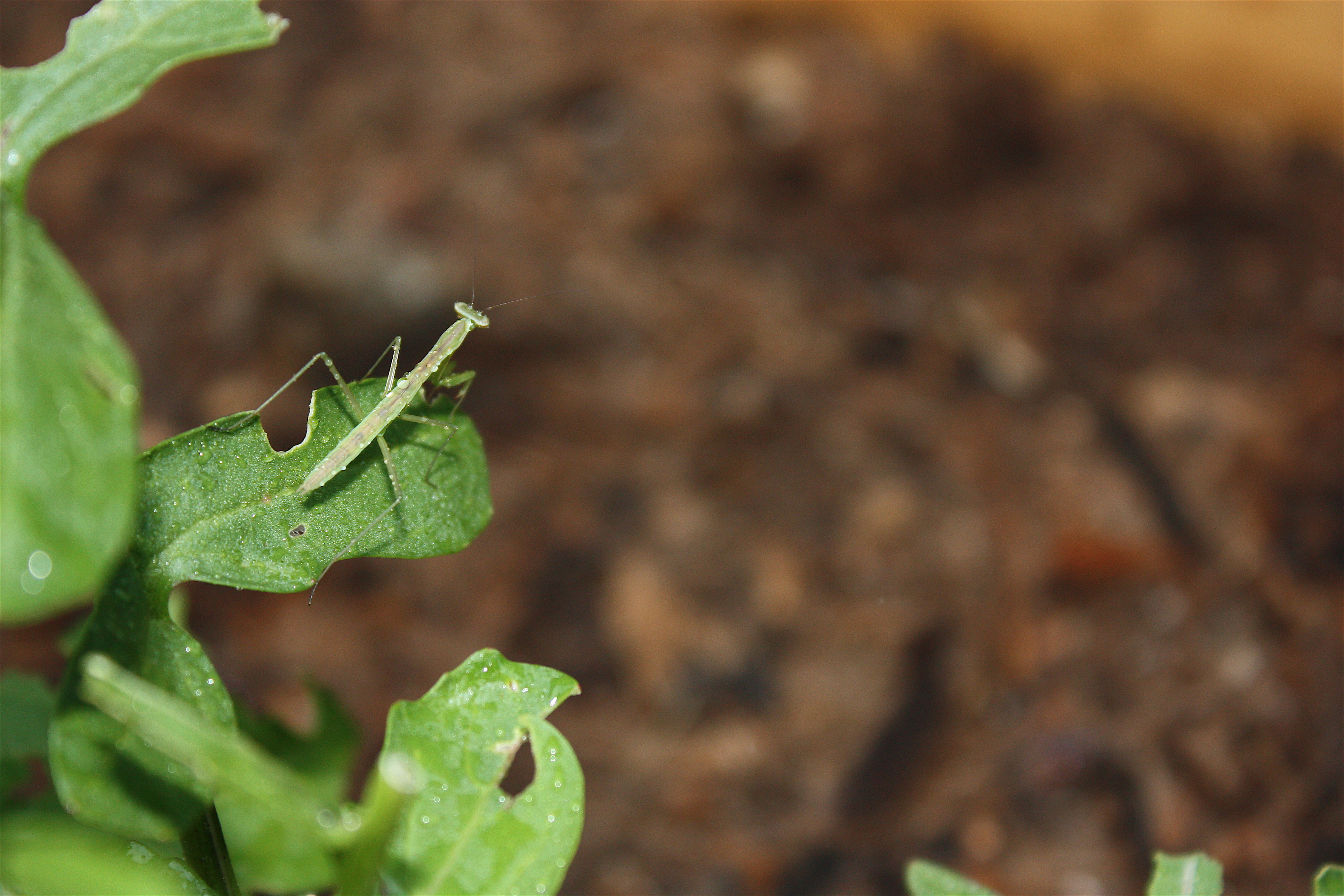 Praying Mantis on Arugula, Mantis religiosa