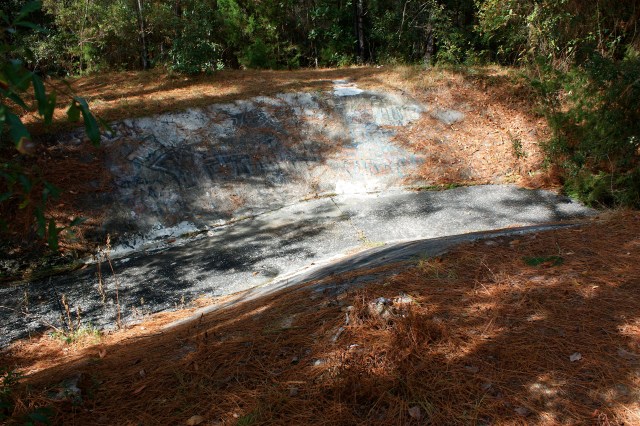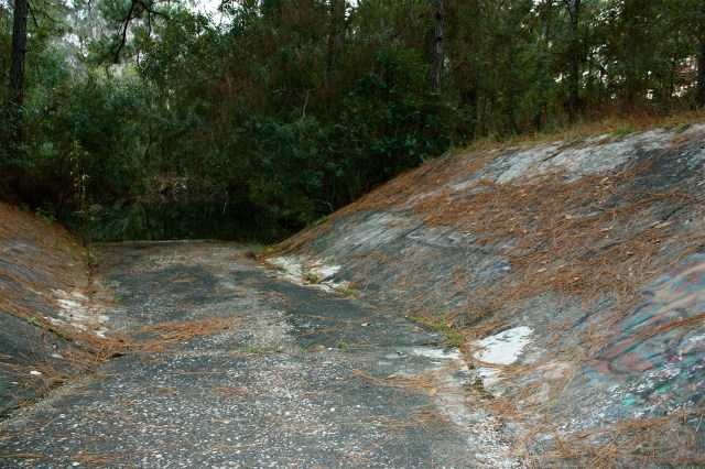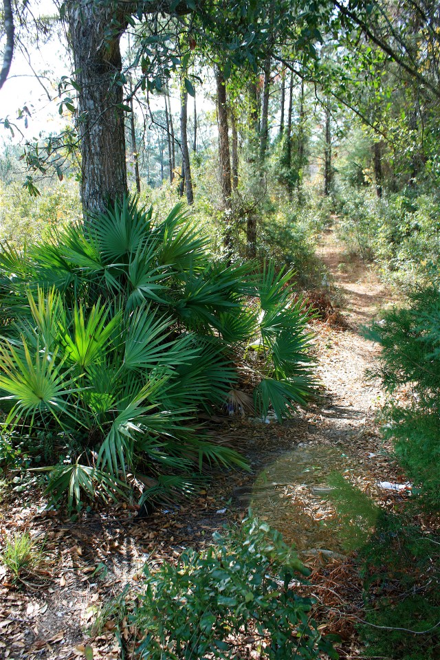 The trail beyond the saw palmetto leads to a secret skate spot we frequented as kids called the “Indy Wall.”