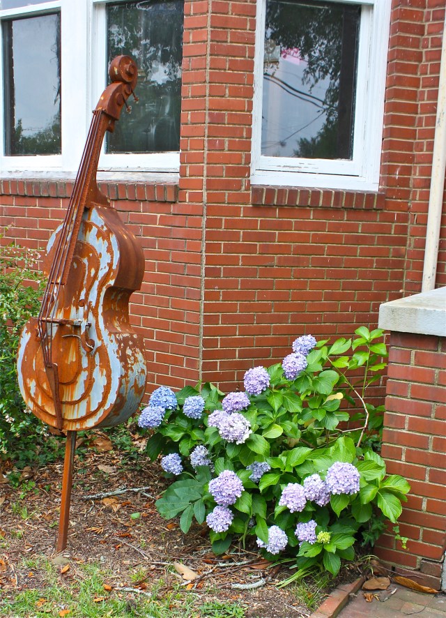 After visiting the school gardens, I walked down Prince Avenue to Daily, the local co-op. They make the best vegan tempeh reubens. The iron cello above is a few doors down.