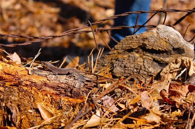 The rusty wire caught my eye first – an old fence brought down by a fallen oak. The anole was equally curious. Thank you. Reply