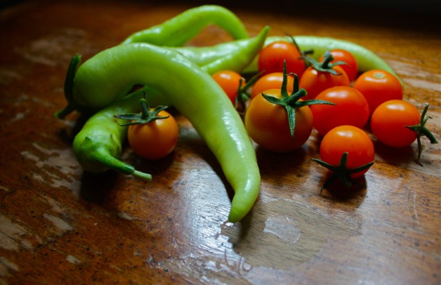 2012 Summer School Veggies After a trip down to the coast, I biked to school this evening to check out our class vegetable bed. Titian tomatoes split from rain, and the pepperocini weigh heavy on stalks. Share this: Click to share on Reddit (Opens in new window) Reddit Click to share on Facebook (Opens in new window) Facebook Click to email a link to a friend (Opens in new window) Email Click to share on X (Opens in new window) X Click to print (Opens in new window) Print Like Loading... Related