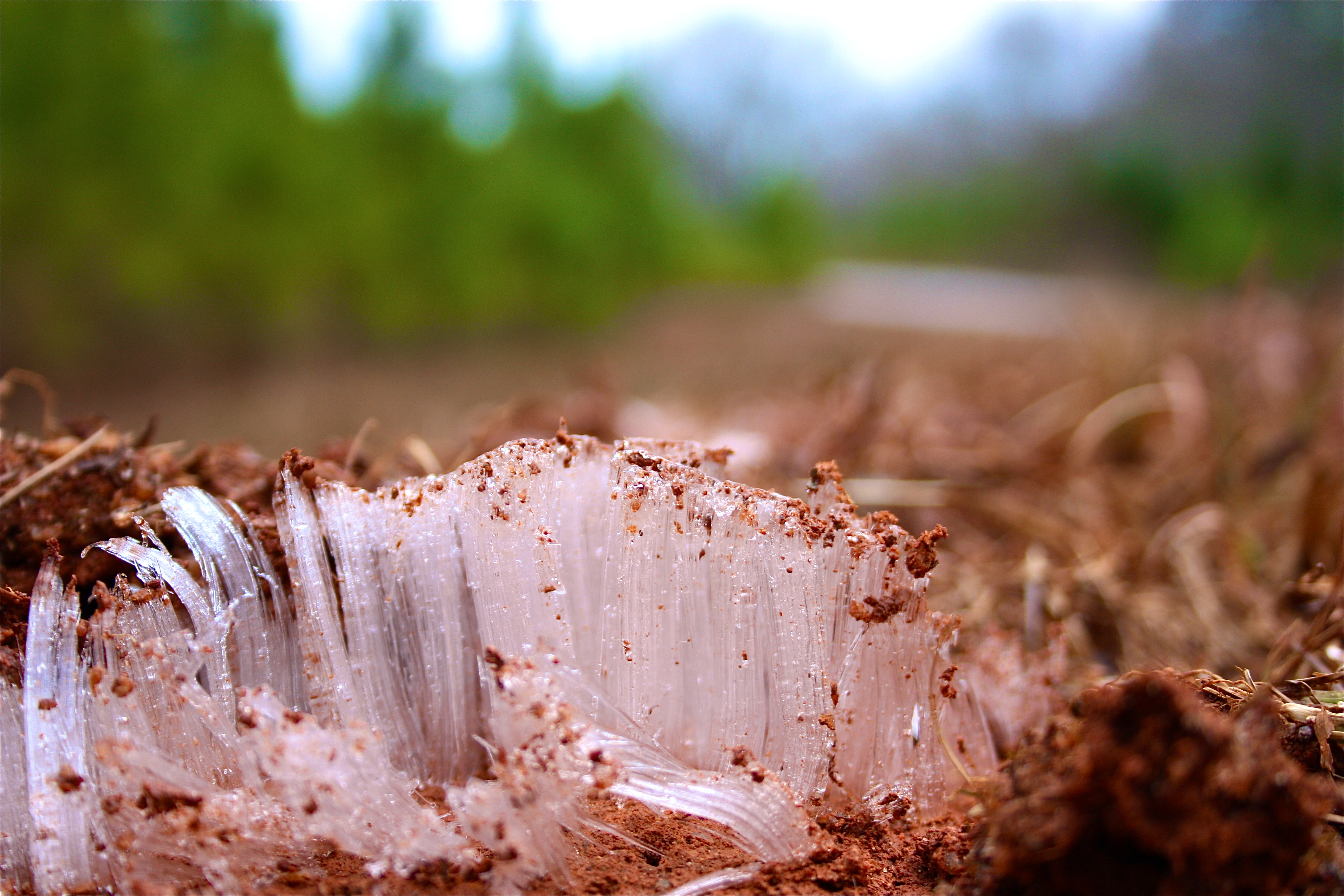 Needle ice occurs when the air temperature is below freezing, and the soil is above freezing. Water flows upward via capillary  motion as heat moves toward colder air above.