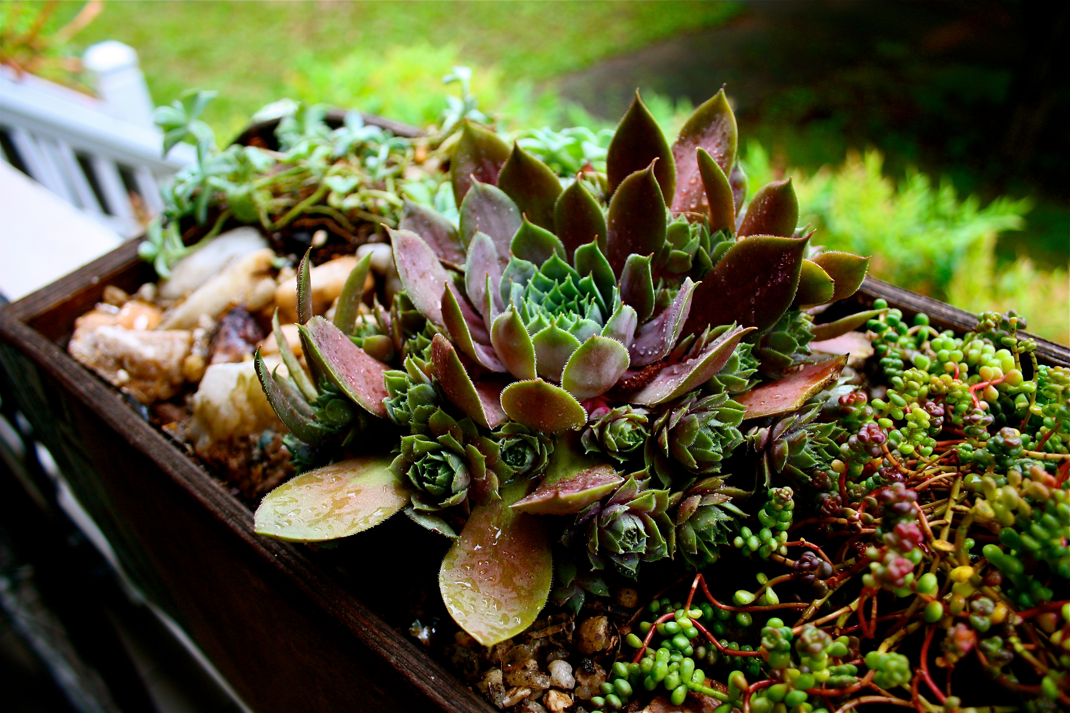 One of this planter’s weathered sides is an old shop deck from Feral Skate Shop (circa 2005). The one opposite was made by a local company called Boulevard Skateboards. The former residents were left outside and didn’t survive last year’s coldest temperatures, so these drought resistant fatties will overwinter indoors.