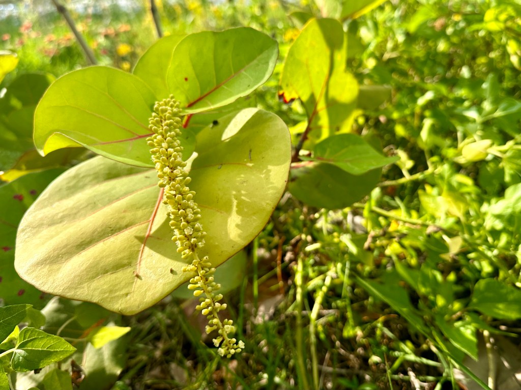 The female sea grape plants share fruit two years after transplantation during a late May gender reveal in the front yard. Explore a jelly recipe here.