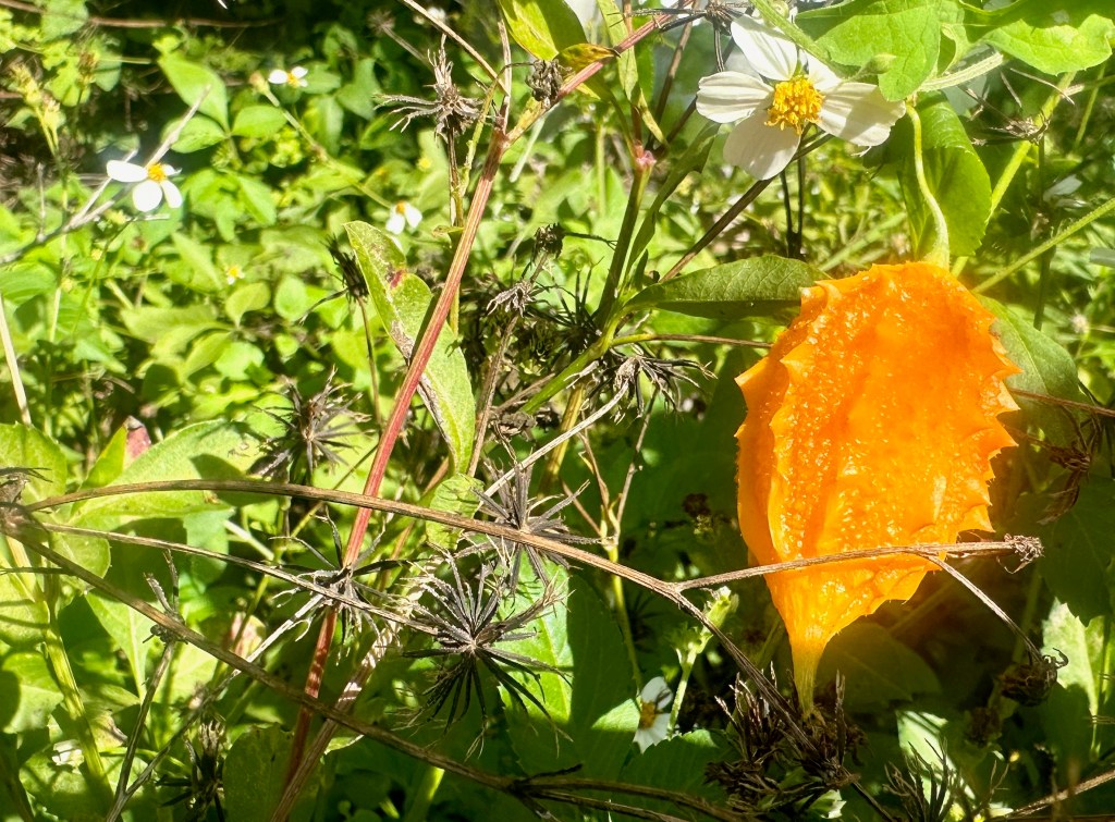 Balsam Pear Momordica charantia An inverted alien flower bursts open next to the bike path on Sanibel Captiva Road. The colorful category II invasive vine shows up more and more frequently throughout Southwest Florida. Momordica charantia
