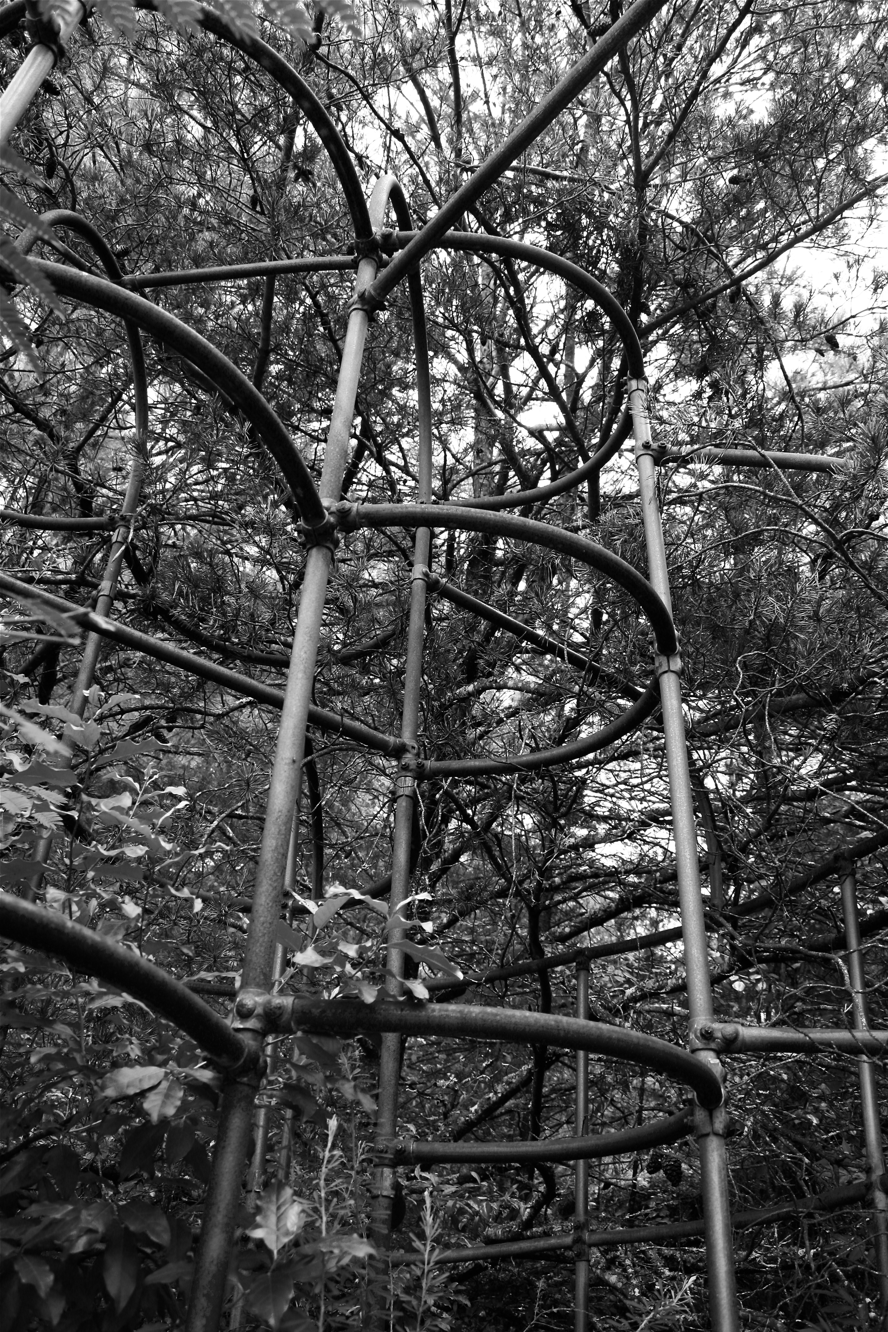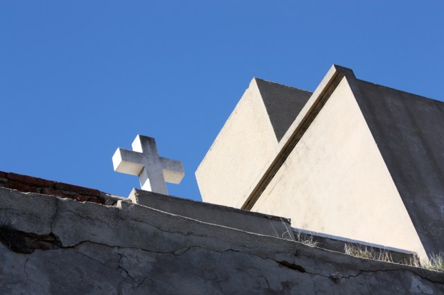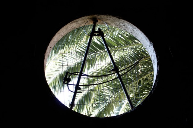 A group of artists tend this garden on the southwestern side of the cemetery. Beyond the lily grows an avocado, or “palta” plant. A sculpture dries in the sun.