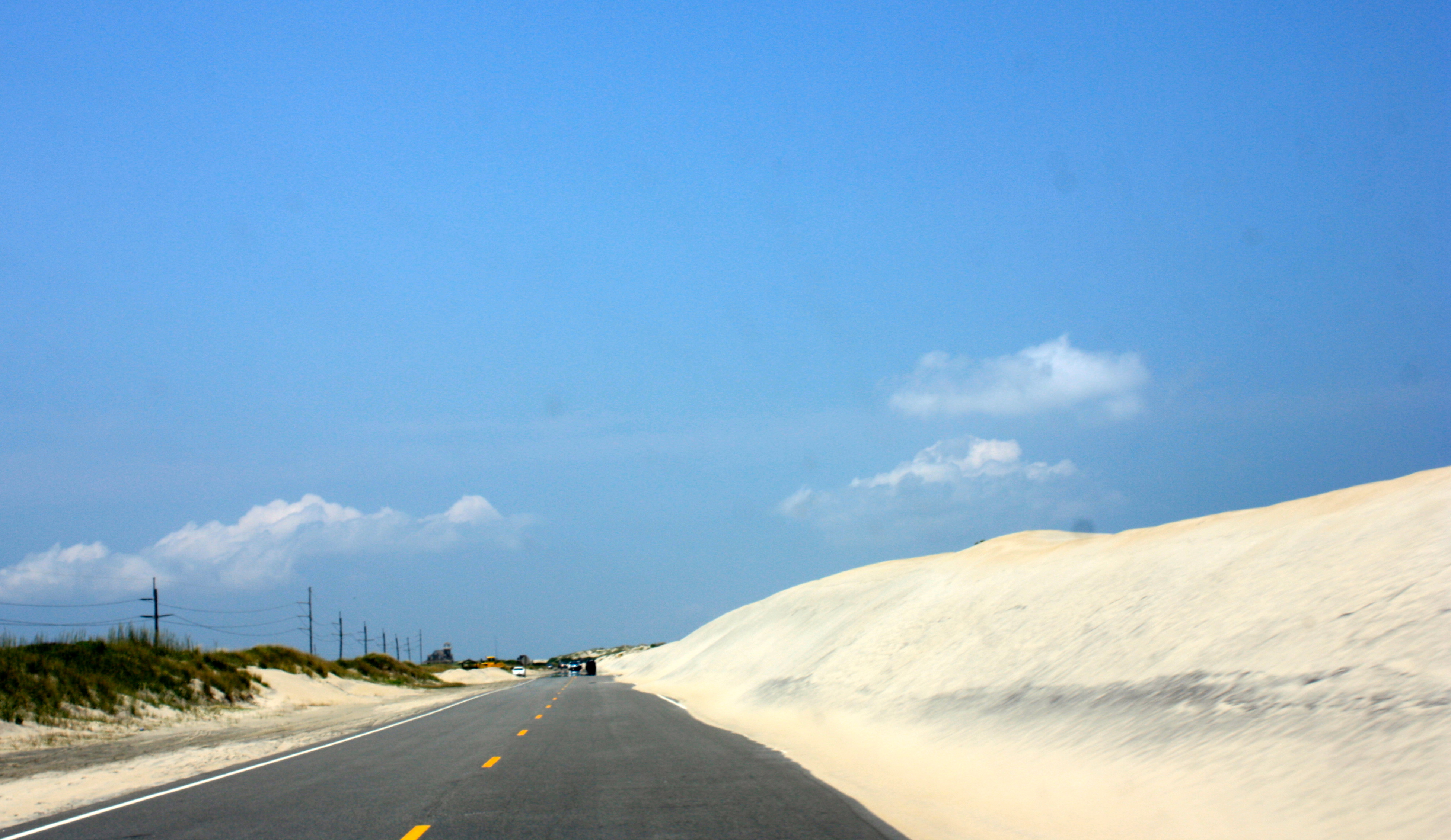 After making a right on Highway 12 in Nags Head, encroaching dunes battle pernicious bulldozers along a series of awe-inspiring islands known collectively as the Outer Banks. The photo above was taken in the Pea Island National Wildlife Refuge.