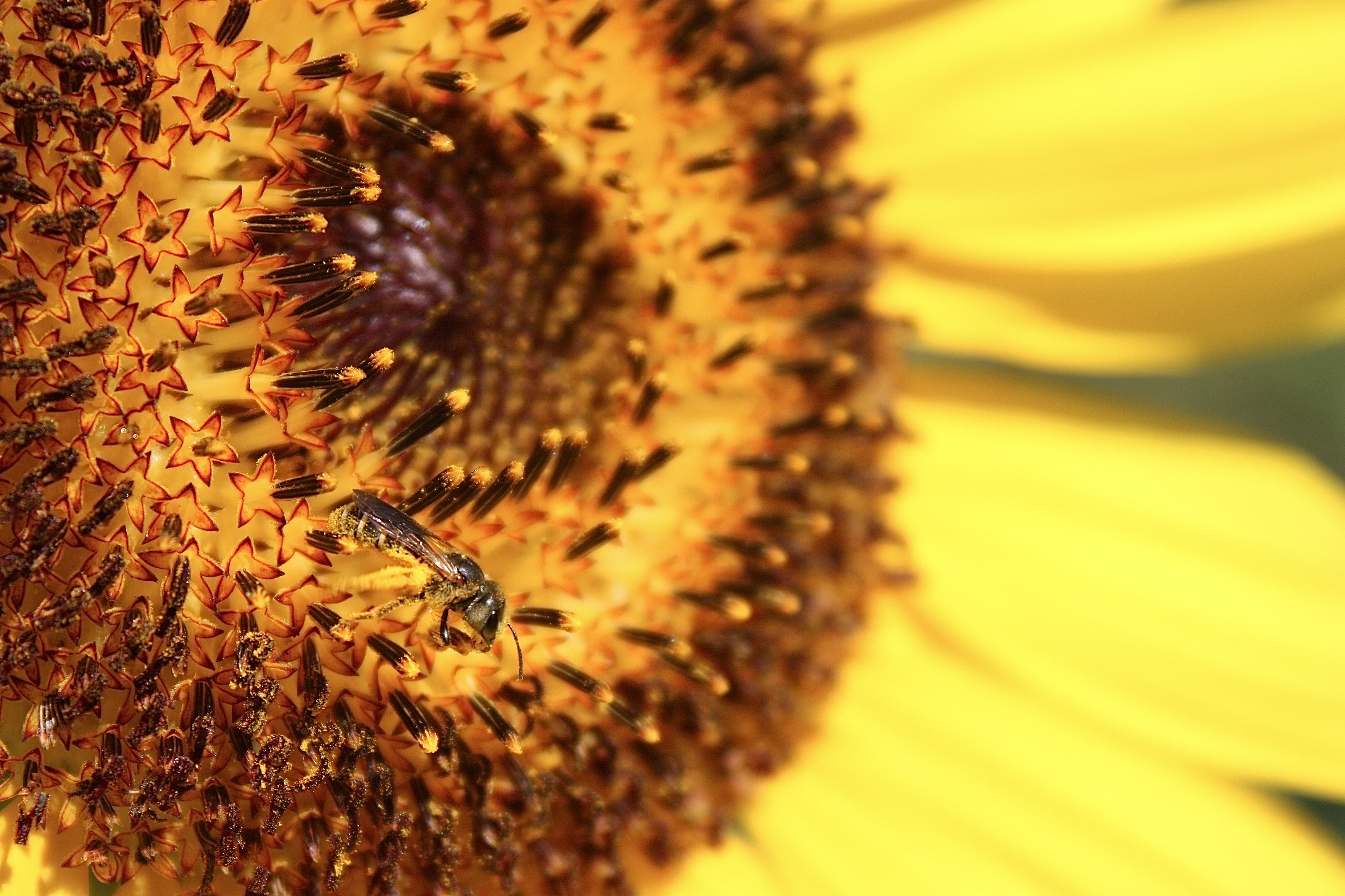 Pollen Bathing Helianthus annuus and Apis mellifera “So the colors of flowers have evolved to ideally tickle the eyes of bees, and I think that’s a truly wondrous result. It means that beauty, as we know it, is not only in the eye of the beholder, it arises because of that eye.” -Ed Yong Helianthus annuus