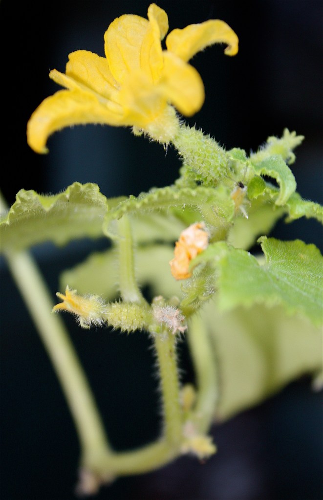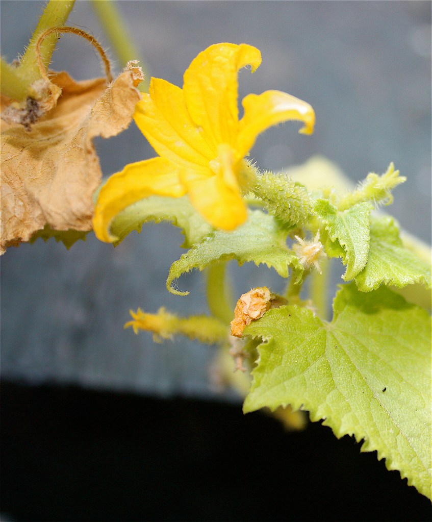 This is my first go at cukes, and they are curious.  The vine flowered a sunshine yellow over a month ago, and I’m waiting for green oblongs.  Instead, pokemon-esque footballs connect runners to flowers.