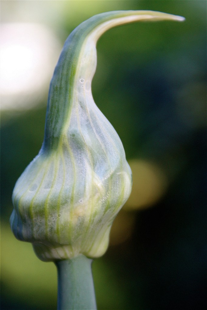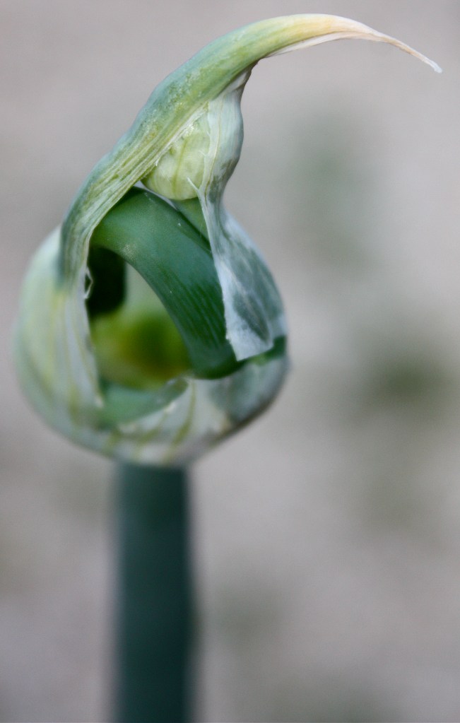 In the knot’s place, three bulblets (one with thinned, crimson skin) remain, and